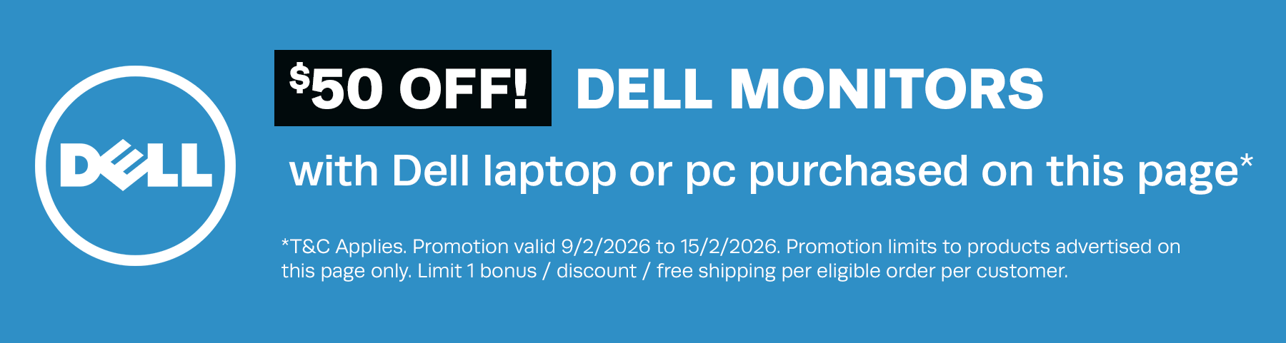 Get $50 off Dell monitor with Laptop or PC purhcased (on this page)*