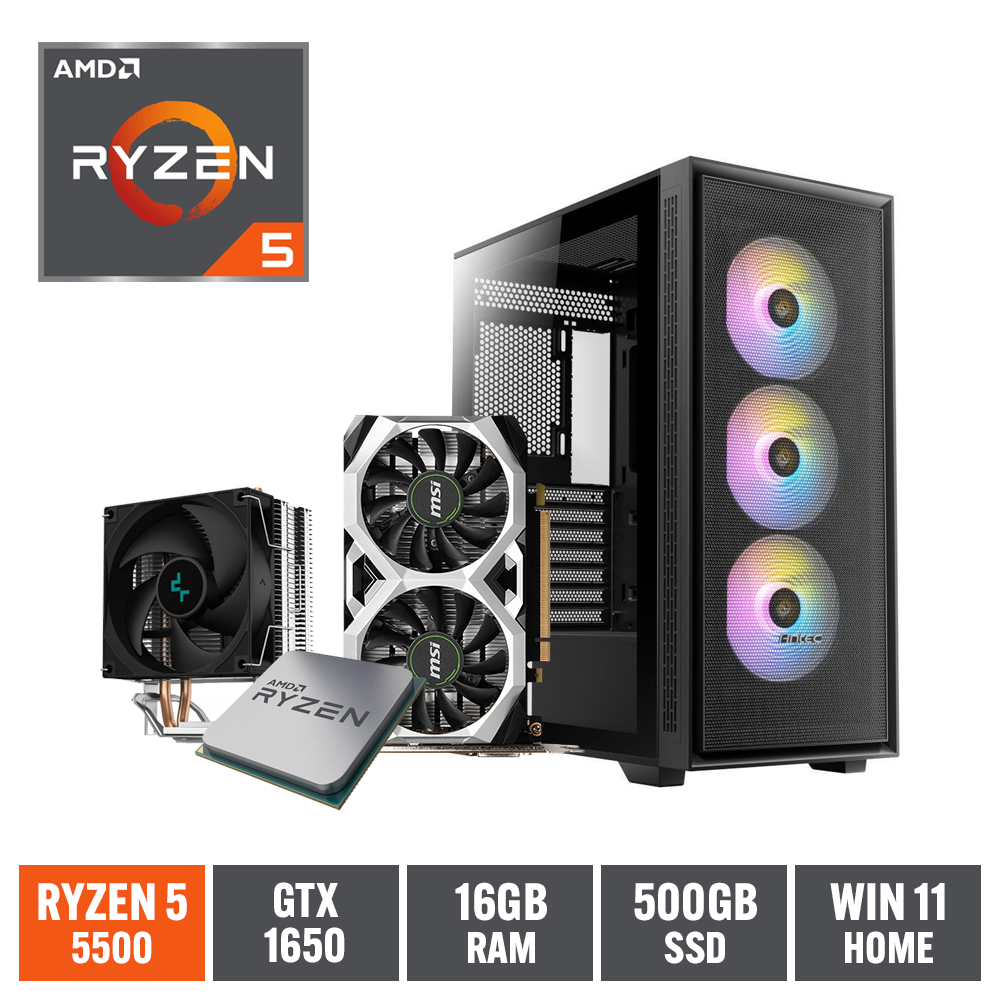 Gaming Express AMD Ryzen 5 5500 GTX1650 16GB Ram 500GB NVMe SSD Win11 Home B550M Gaming PC