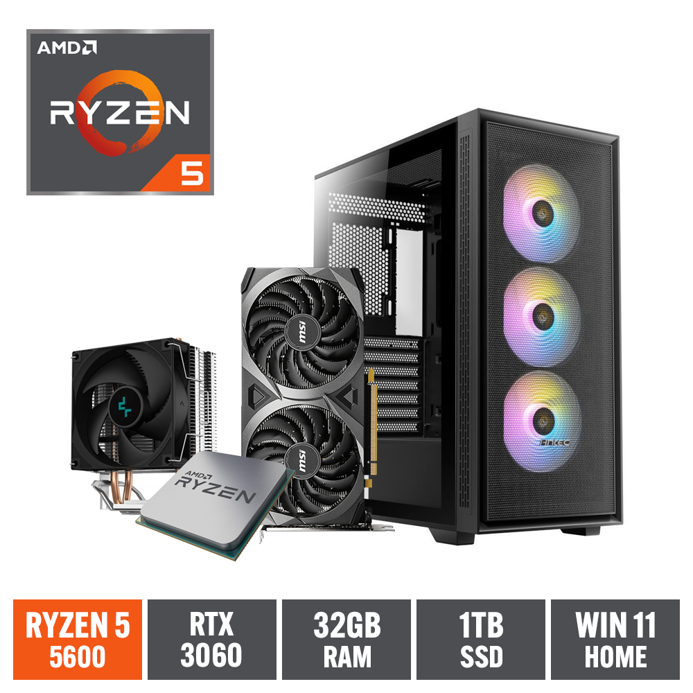 Gaming Express AMD Ryzen 5 5600 RTX3060 32GB Ram 1TB NVMe SSD Win11 Home B550M Gaming PC