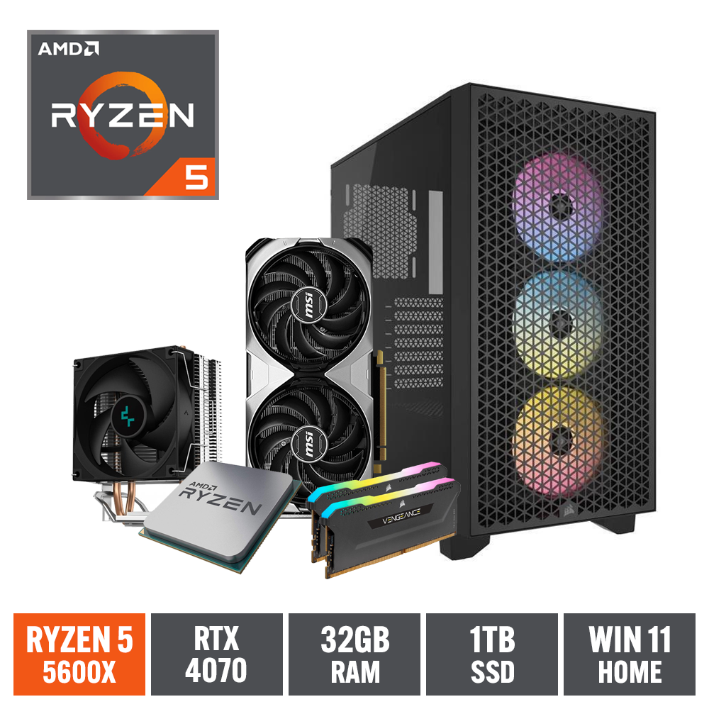 Gaming Express AMD Ryzen 5 5600X RTX4070 32GB Ram 1TB NVMe SSD Win11 Home B550M WiFi Gaming PC