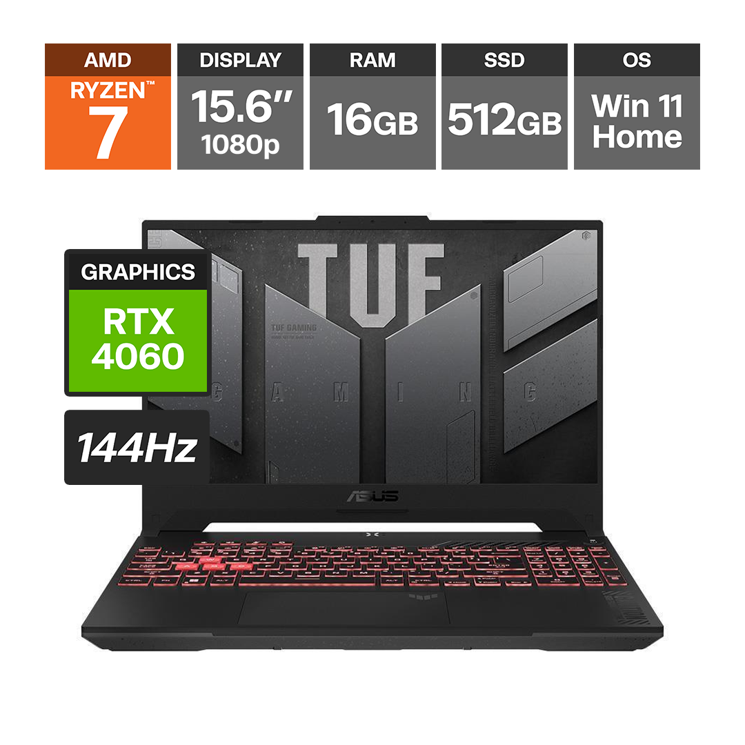 Asus TUF Gaming A15 15.6" 1080p IPS-level 144Hz Ryzen 7 7435HS 16GB GeForce RTX 4050 512GB SSD WiFi 6 W11H Gaming Laptop