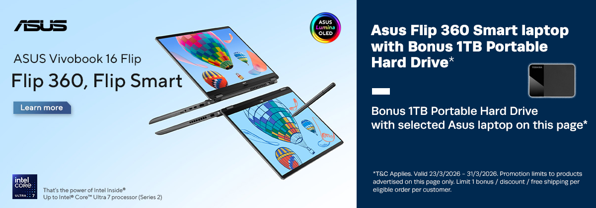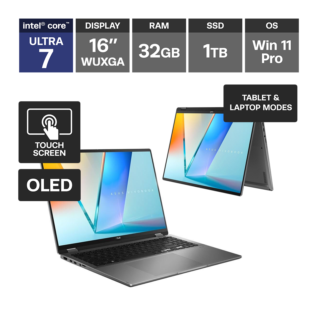 Asus Vivobook 16 Flip TP3607SA 16" WUXGA OLED Touch Ultra 7 258V 32GB 1TB SSD AI Boost WiFi 7 W11P Laptop