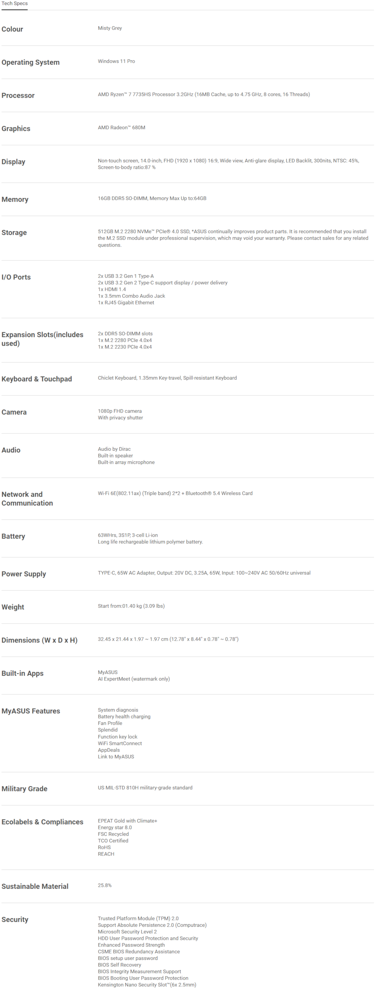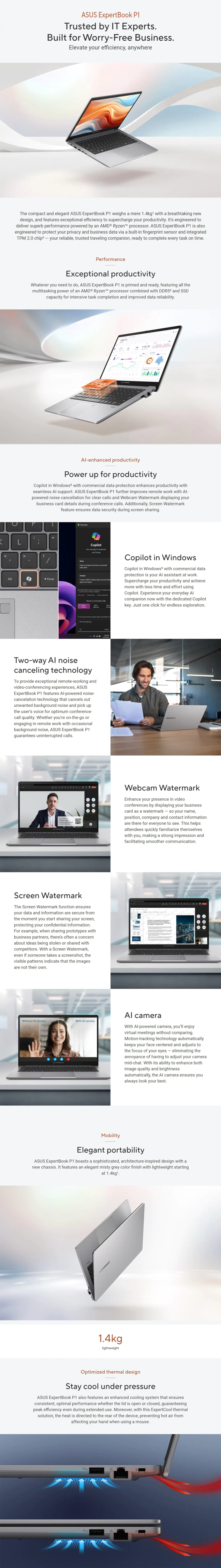 Asus ExpertBook P1 14" 1080p Ryzen 7 7735HS 16GB 512GB SSD WiFi 6E W11P Laptop
