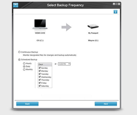 Some people want their files instantly backed up while others prefer to only have backup running when they are not using the computer. With WD SmartWare, you can pick between automatic, continuous backup or schedule the day, time and frequency of your backup.