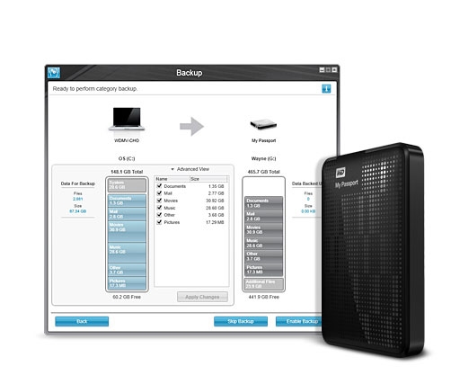 The best backup medium is an external hard drive. It takes stacks of CDs or DVDs and handfuls of thumb drives to back up all the data that could be stored on a single external hard drive. WD SmartWare Pro makes it easy to back up to an external hard drive. High-capacity external drives are fast and allow you to keep all your backed up data in one place. For extra safety, get a two-drive external storage system and dedicate half the capacity for mirroring to automatically and instantaneously back up your backup every time. WD's external hard drives are sleek, stylish, made for your grab-and-go lifestyle and most come with our easy-to-use backup software... so let WD be your backup plan!