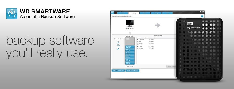 WD offers WD SmartWare Pro automatic backup software that makes it easy to back up your important files on your schedule. With WD SmartWare Pro you can select one or both of the following two options: