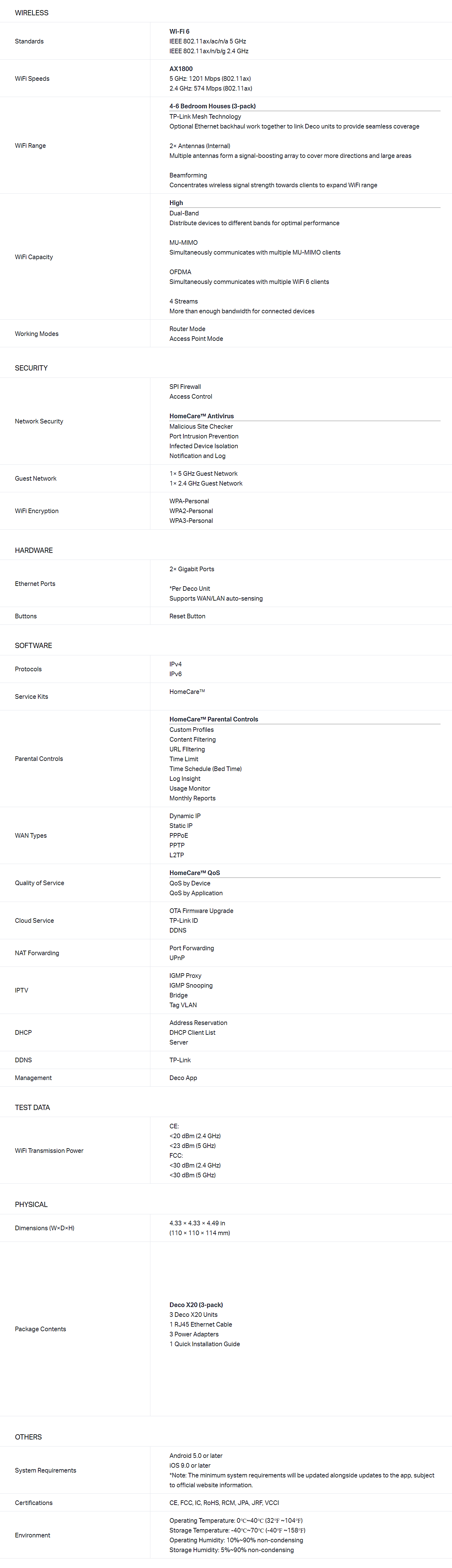 TP-Link Deco X20 (3 Pack) AX1800 MU-MIMO OFDMA Dual-Band WiFi 6 Mesh Wi-Fi System